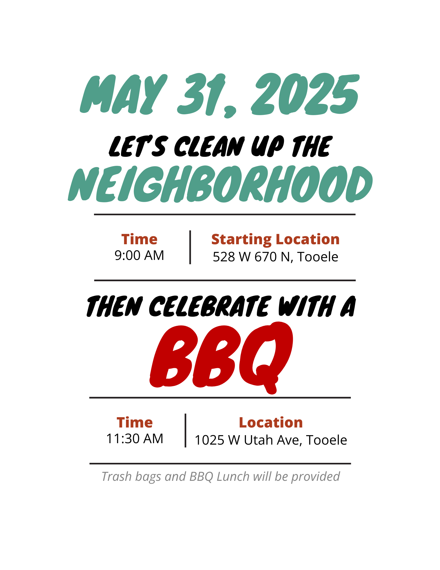 Don't miss this opportunity to help clean up our neighborhood and enjoy a delicious BBQ with neighbors.